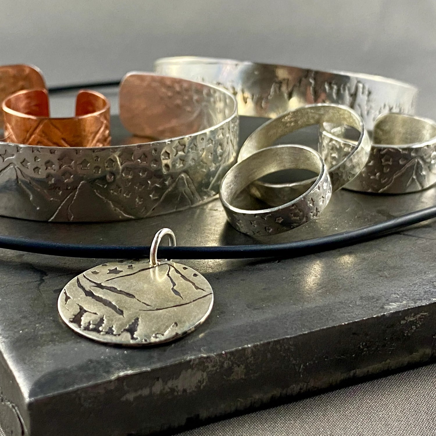 Crafted in sterling silver, this collection features an assortment of mountain-inspired necklaces, rings, cuffs, and earrings, each adorned with vibrant turquoise and other stunning stones.